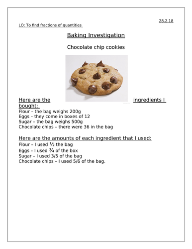 Cooking Fractions Teacher Made