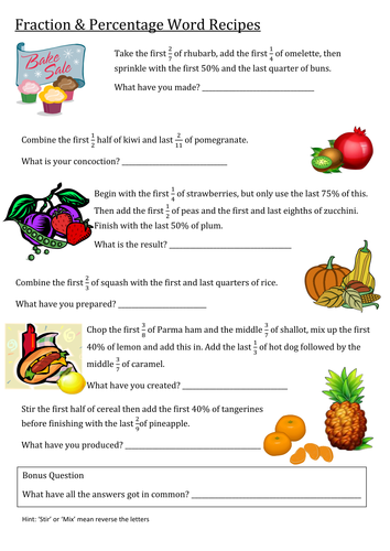 Fractions And Recipes Project Worksheets Teachers Pay